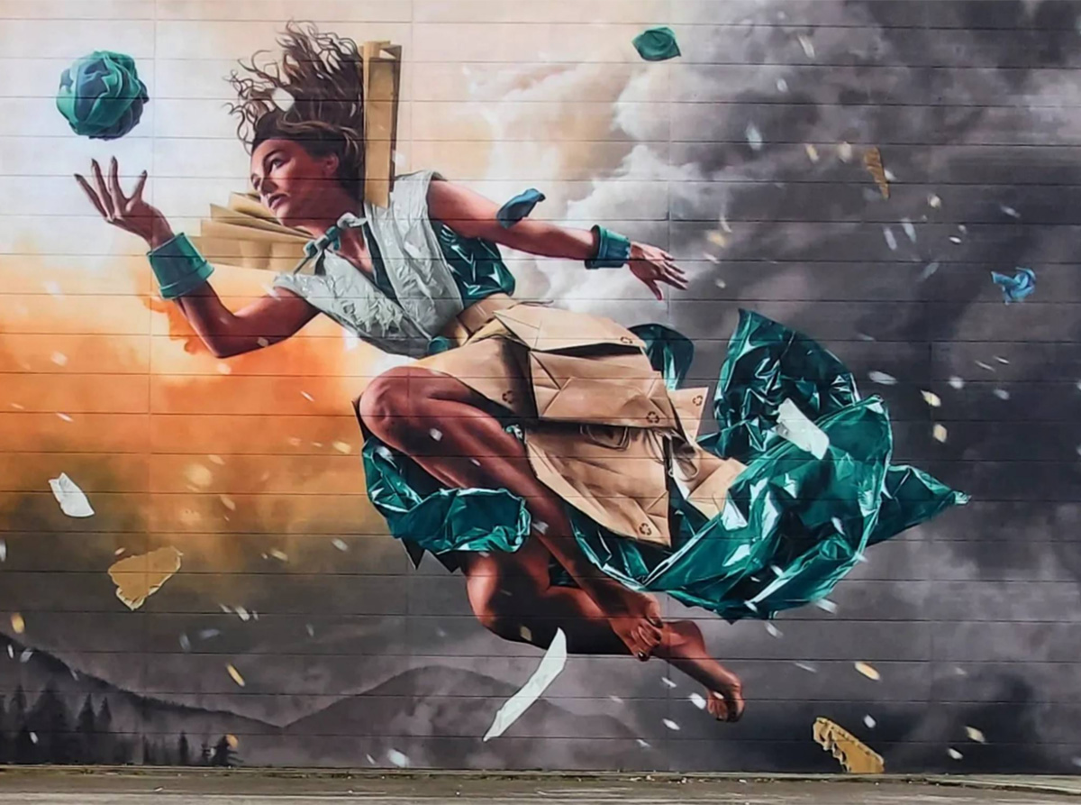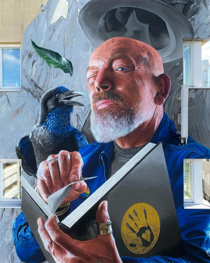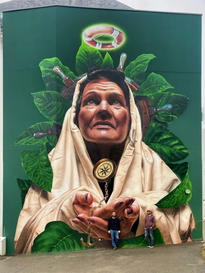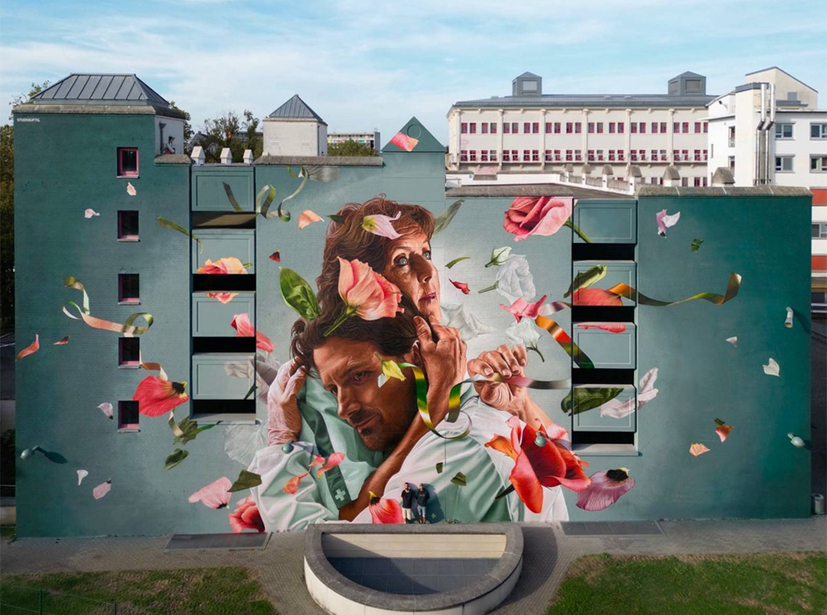 «Studio Giftig» – дуэт художников из Нидерландов Нильса ван Свемена (Niels van Swaemen) и Каспара ван Лика (Kaspar van Leek). Они познакомились в 2007 году и разработали общий стиль живописи, близкий к сюрреализму. Их творческие фантазии с успехом воплощаются не только в виде эффектных уличных муралов, но и в формате традиционных картин. Ребята много работают по всему миру, а композиции дуэта занимают призовые места на фестивалях стрит-арта. Два года назад я писал об их замечательной фреске «Весна в Белфасте», выполненной для фестиваля «Hit the North». Подробнее с творчеством художников вы можете познакомиться на сайте: studiogiftig.nl.