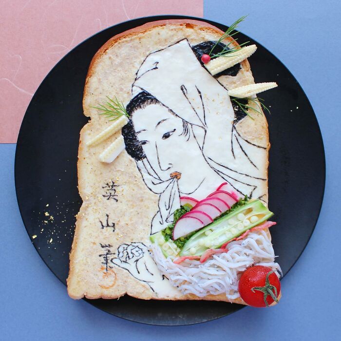 Постоянные читатели моего сайта уже знакомы с творческими практиками фуд-дизайнеров, использующих для самовыражения продукты питания. Можно вспомнить композиции художницы из Малайзии Хонг Юи, или традиционное японское искусство вырезания изображений из овощей или фруктов от мастера Гаку. Сегодня поcмотрим на работы японки Манами Сасаки, которая превращает простые ломтики хлеба в потрясающие съедобные шедевры. После окончания Университета искусств Мусасино она работала художником и дизайнером. Когда грянула пандемия, девушка занялась украшением тостов, просто чтобы оставаться креативной и максимально использовать время, проведенное на карантине. Манами использует любые ингредиенты, которые оказываются под руками: сливочный сыр, яйца, ягоды, фрукты, водоросли, семена и даже васаби. Свое вдохновение она черпает отовсюду, начиная от традиционной японской гравюры и заканчивая произведениями массовой культуры. Подробнее с творчеством художницы вы можете познакомиться здесь: sasamana.com.