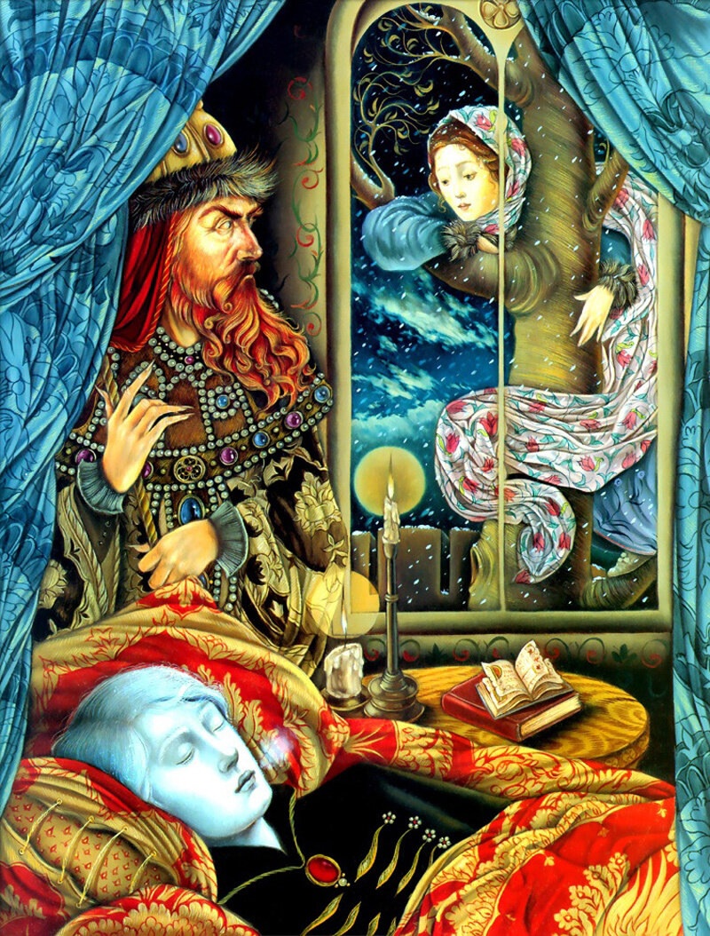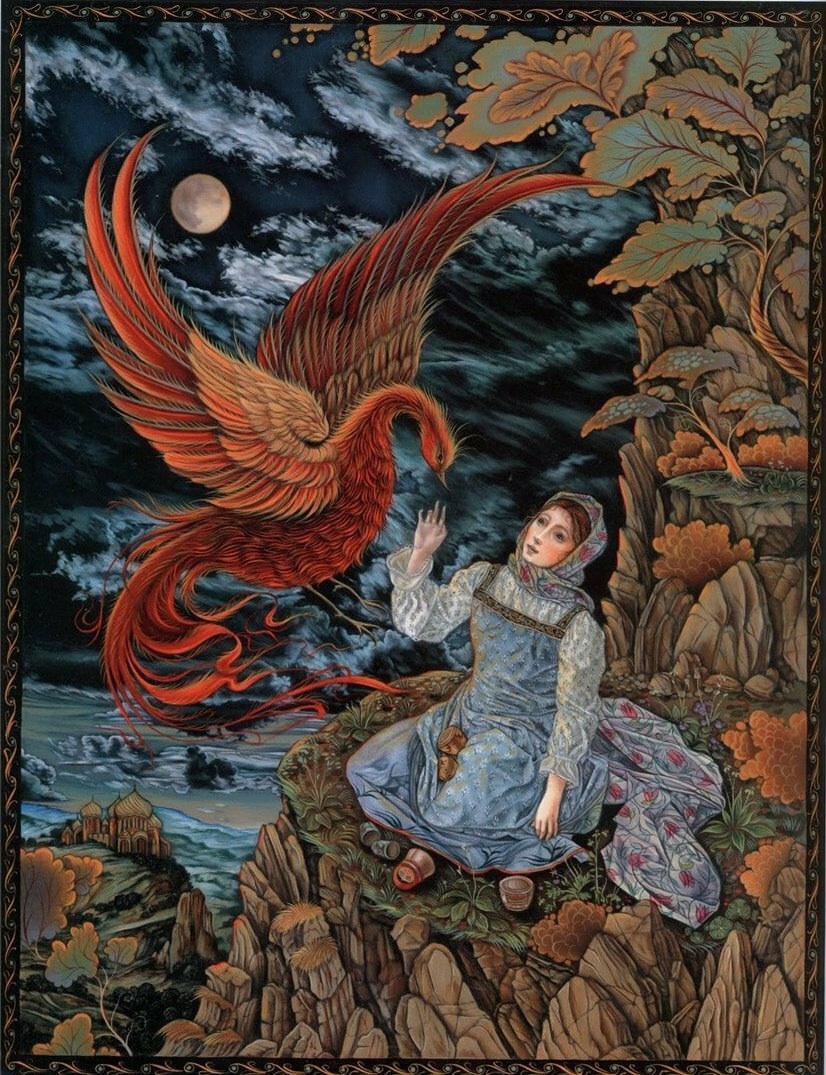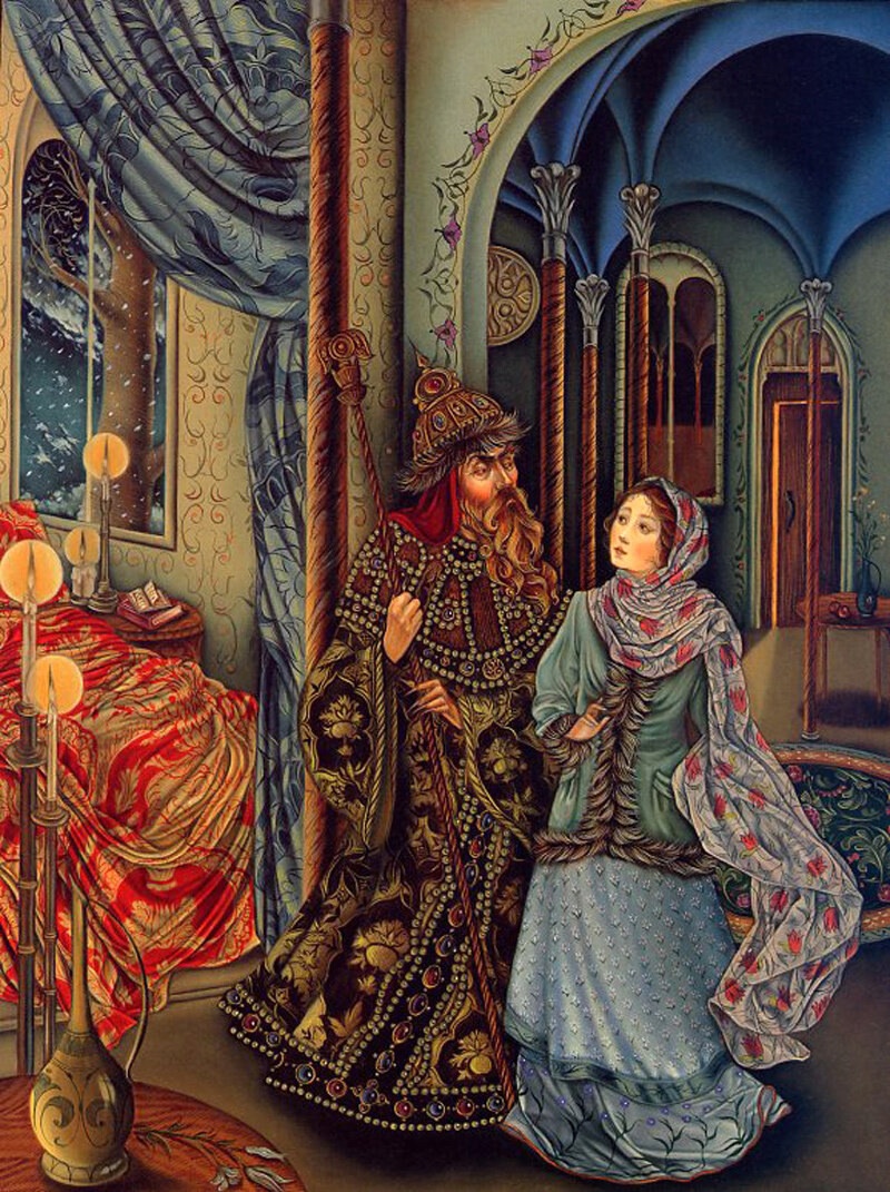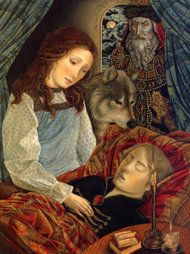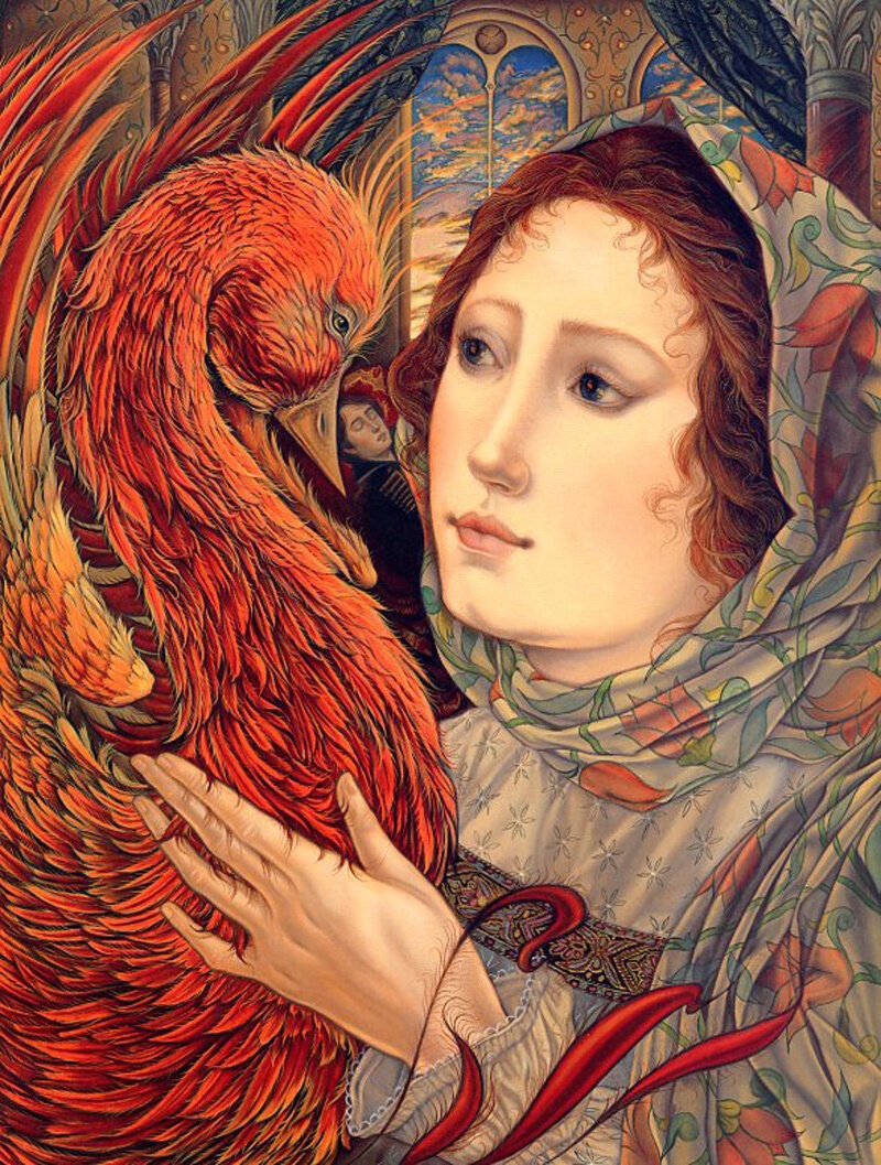 А вот рисунки к «Волшебной матрешке» создавала профессор кафедры искусств Калифорнийского государственного университета в Нортридже Лорел Лонг (Laurel Long). Она далеко не новичок в мире иллюстрации, оформила много детских изданий, включая «Ганса Бринкера» Брюса Ковилла и «Леди и лев» братьев Гримм. За книгу «Самое могущественное сердце» Линн Каллен художница была награждена Золотой медалью Общества иллюстраторов, а ее работы для «Двенадцати дней Рождества» даже были опубликованы в «The New York Times Book Review». Яркий и изысканный стиль Лорел Лонг буквально запестрел в «Волшебной матрешке» традиционными русскими символами. На ее рисунках ожили персонажи сказок нашего детства: волк, медведь, жар-птица, легко узнаются узоры и национальные костюмы. Лорел призналась, что для лучшей адаптации материала она долго изучала палехскую роспись. В целом ее работа не вызывает серьезных нареканий, и на меня произвела благоприятное впечатление. С другими аспектами творчества Лорел Лонг вы можете познакомиться на официальном сайте художницы. Все изображения: © Laurel Long.