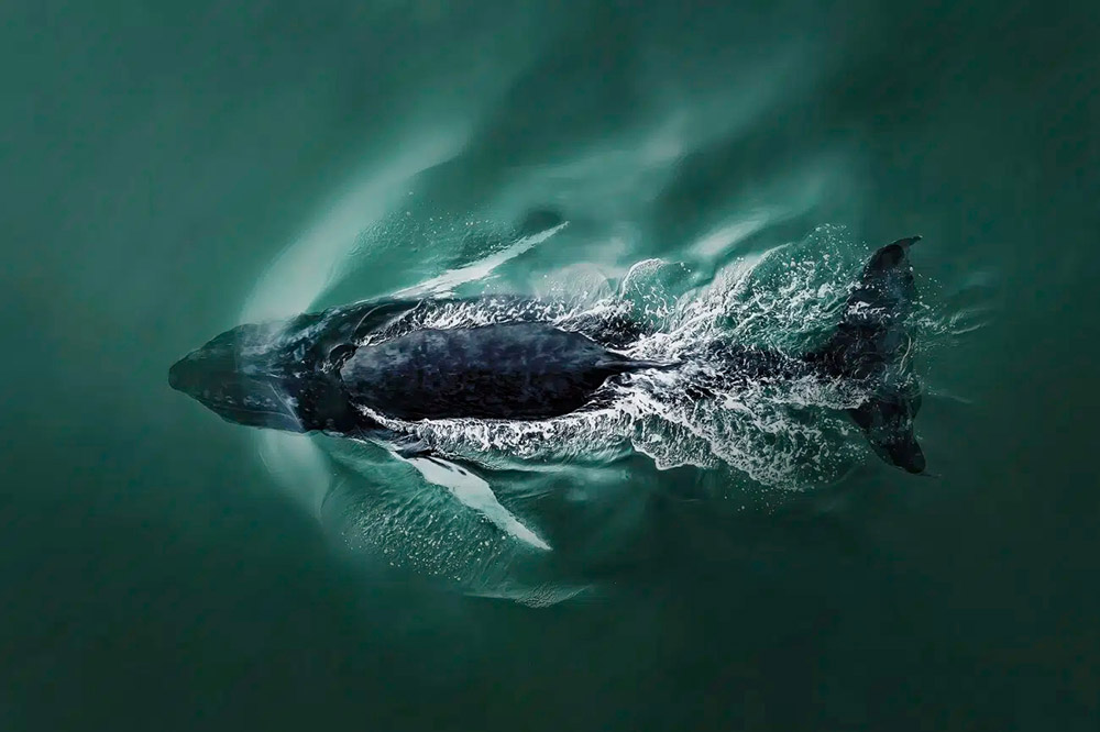 «Дайвинг» Джоанны Стейдл, США. Набрав воздуха, горбатый кит ныряет под воду Атлантического океана. Фотография сделана в 150 метрах от берега в Саутгемптоне, штат Нью-Йорк».