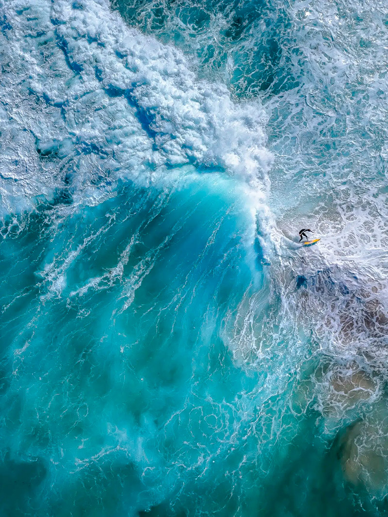 «Лавина» Лоренцо Пассалаква, Австралия. Серфер, противостоящий мощной силе океана, вызывает ощущение побега от горной лавины.