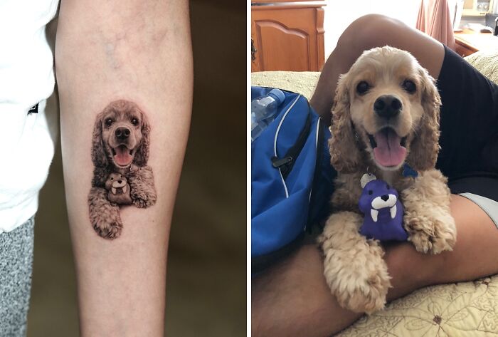 Лос-анджелесская художница Yeono с поразительной точностью изображает на коже портреты домашних питомцев. Ее искусство востребовано прежде всего среди местных владельцев собак и кошек, желающих увековечить своих любимцев в татуировках.