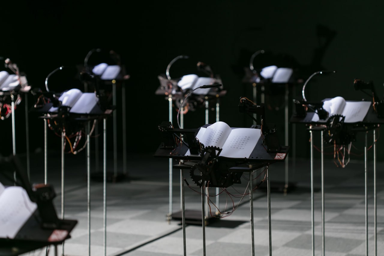 Текст, который зачитывают роботы взят из книги Конфуция «Лунь юй». На протяжении тысячелетий этот труд определяет представления об этике, морали и философии в странах Восточной Азии. При помощи инсталляции автор размышляет о том, как тексты формируют мышление, превращая обучение в процесс, где личное переживание подчинено коллективной дисциплине.