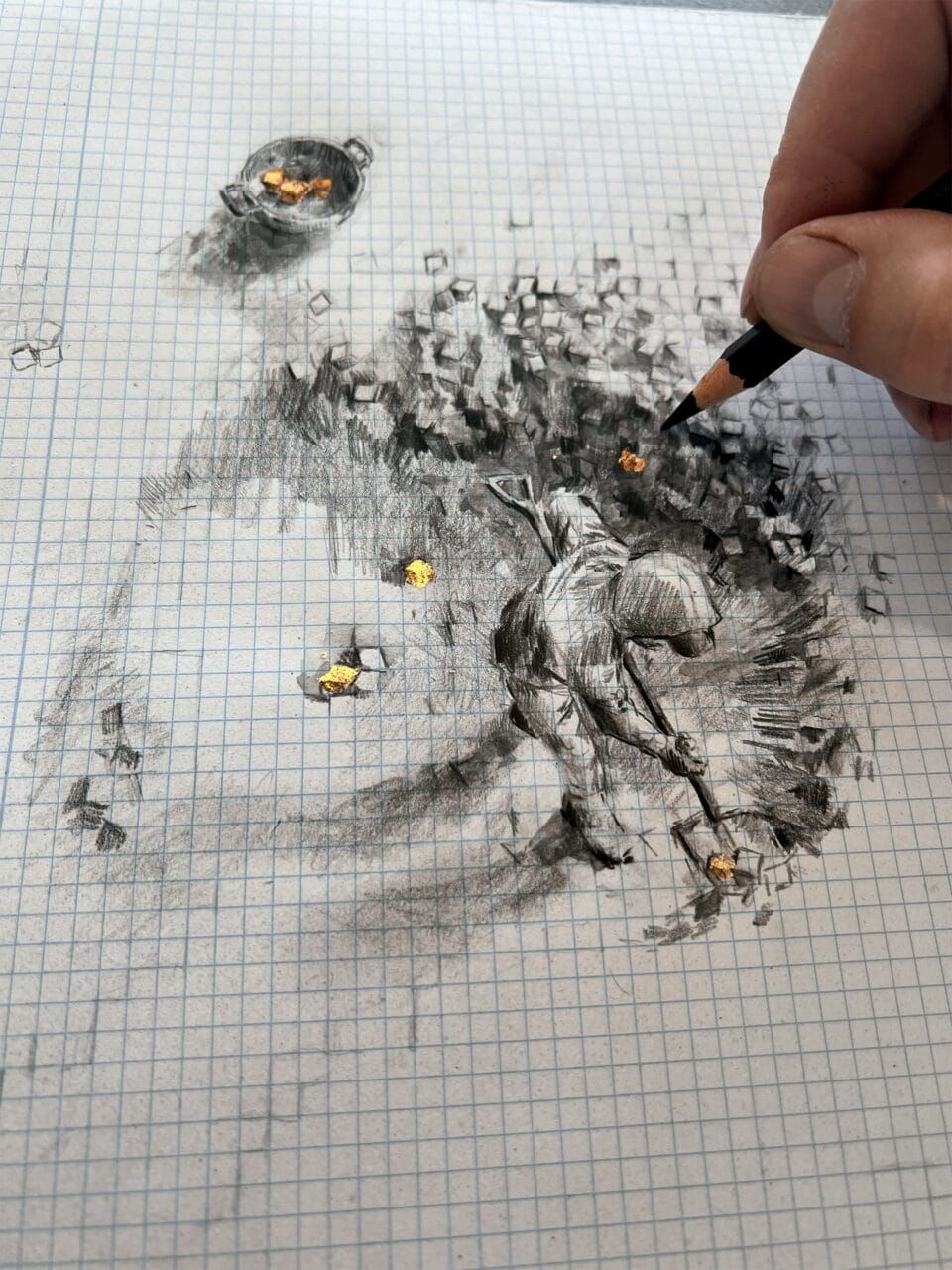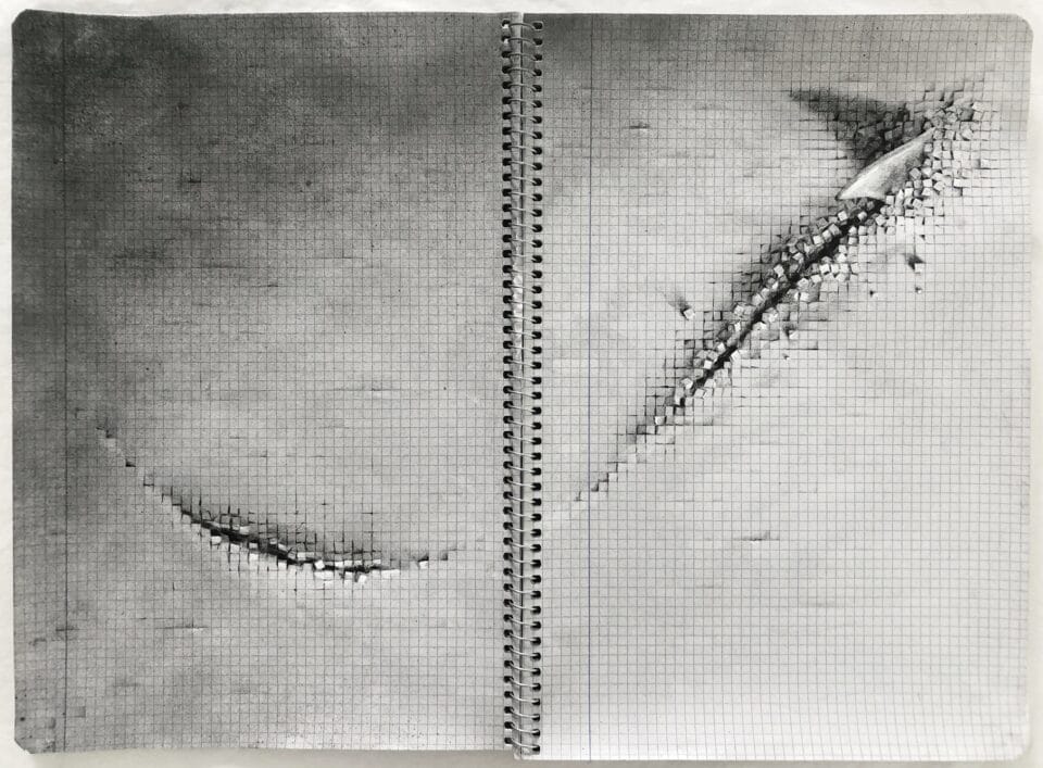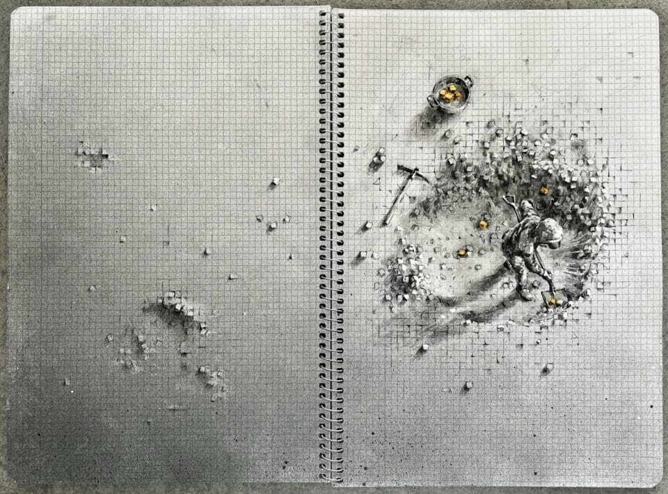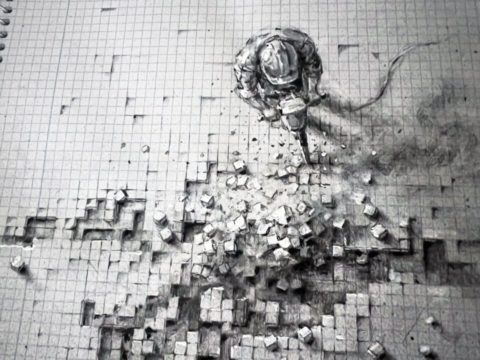 Испанец Сантьяго Сильвестре (Santiago Silvestre), более известный как Pejac – один из ярчайших представителей уличного искусства. Я неоднократно рассказывал о его творчестве на страницах сайта. Выяснилось, что занимается он не только настенными и тротуарными фресками, но и уютной, почти миниатюрной графикой. Посмотрите, как остроумно Pejac обыграл в своей серии рисунков мелом и угольным карандашом текстуру обычной бумаги в клетку. Художник словно бросает вызов нашему восприятию пространства и возможностям чистого листа. На мой взгляд, получилось очень классно!