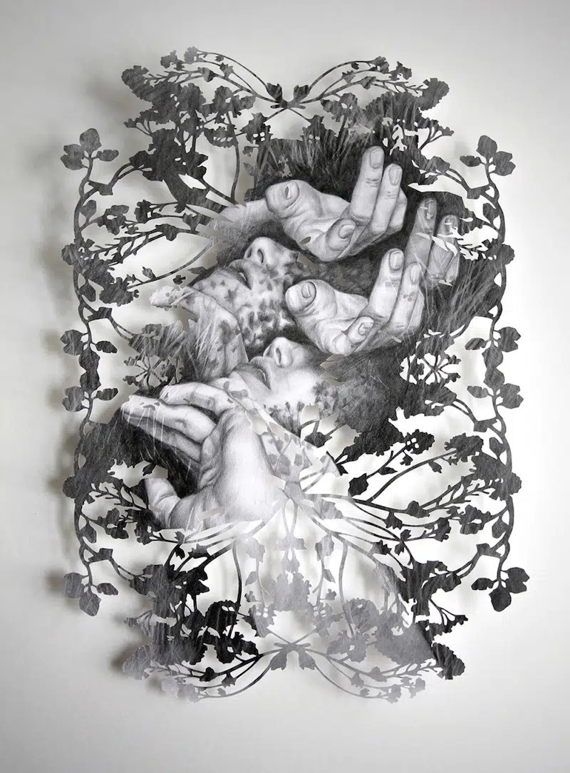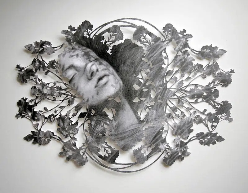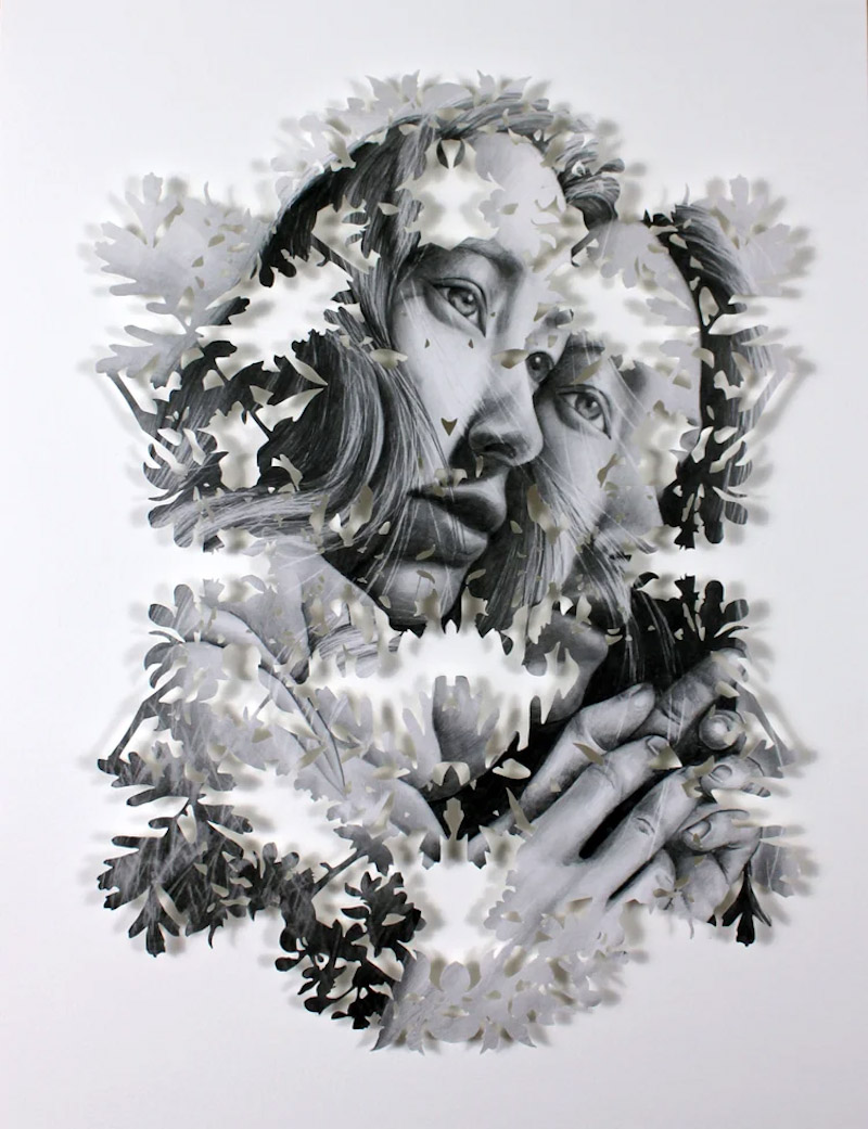 «Эта серия началась десять лет назад как эксперимент по слиянию двух техник. После нескольких лет работы с бумагой меня заинтересовало физическое взаимодействие между лезвием и моими собственными рисунками. Меня всегда привлекали игра света в кронах деревьев и замысловатые силуэты, создаваемые деревьями. Переводя эти органические узоры цветов, листьев и ветвей в рамки портрета, я хотела воссоздать эффект лица, увиденного сквозь солнечный свет, где естественные тени тянутся по чертам лица, определяя его форму» − заявляет Ким.  Подробнее с работами автора вы можете познакомиться на ее сайте.